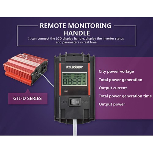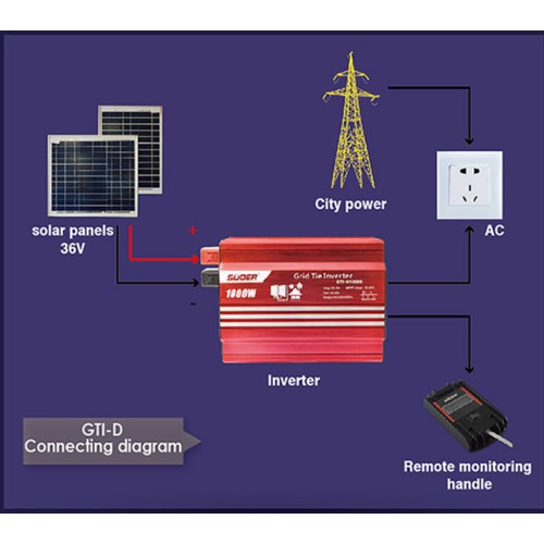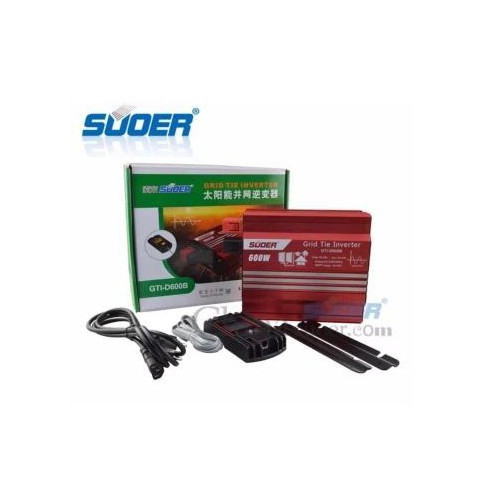 Bộ hòa lưới điện có đồng hồ hiển thị 600W GRID TIE INVERTER GTI-D600BBộ Hoà Lưới Điện Năng Lượng Mặt Trời SUOER được lập trình thông minh có chức năng để chuyển hóa dòng điện 1 chiều của tấm pin năng lượng mặt trời thành điện xoay chiều tần số và pha giống như điện lưới và hòa trực tiếp vào lưới điện để sử dụng. Không cần bảo dưỡng, không cần sử dụng acquy để lưu trữ do đó tăng hiệu suất sử dụng năng lượng vì không bị hao phí nạp bình acquy, thời gian thu hồi vốn ngắn với chi phí đâu tư thấp, tuổi thọ dài…
