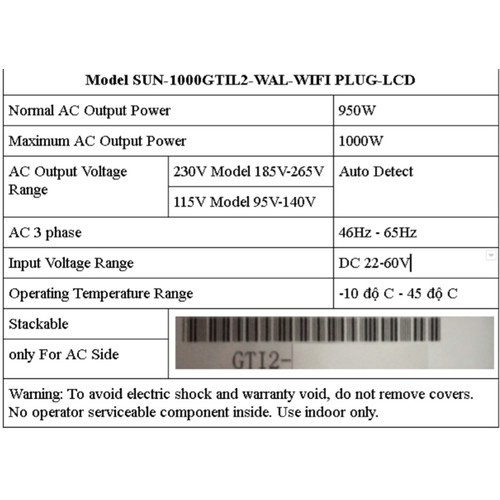 Thiết Bị Điện Gia Dụng > Khác || Hòa lưới gió bám tải Sun 1000W 22V-65V - SUN-1000G2-WAL-22-65VCòn hàng