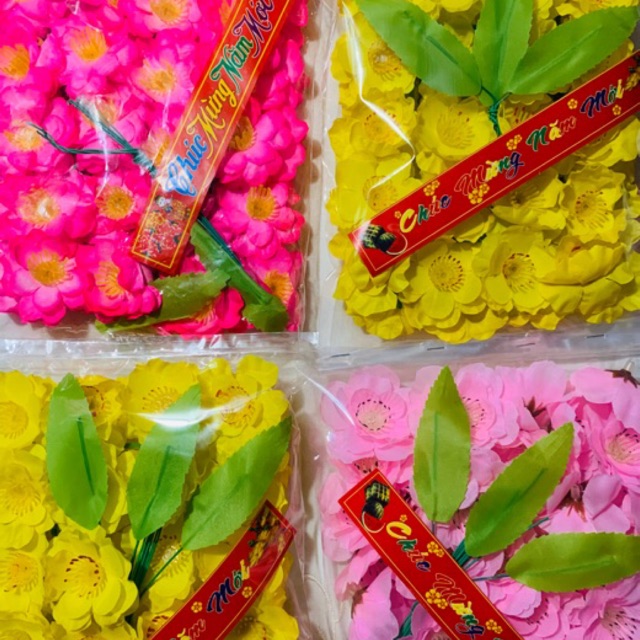 Là một phần không thể thiếu để tô điểm cho không gian thêm ấn tượng ngày Tết, tạo nên không gian ấm cúng sum vầy ngày xuân.1 bịch hoa mai giả gồm