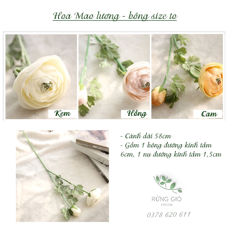 Giới thiệu Hoa Mao Lương SIZE TO - hoa giả giống thật - 1 Cành 1 Bông 1 Nụ, có ảnh thật