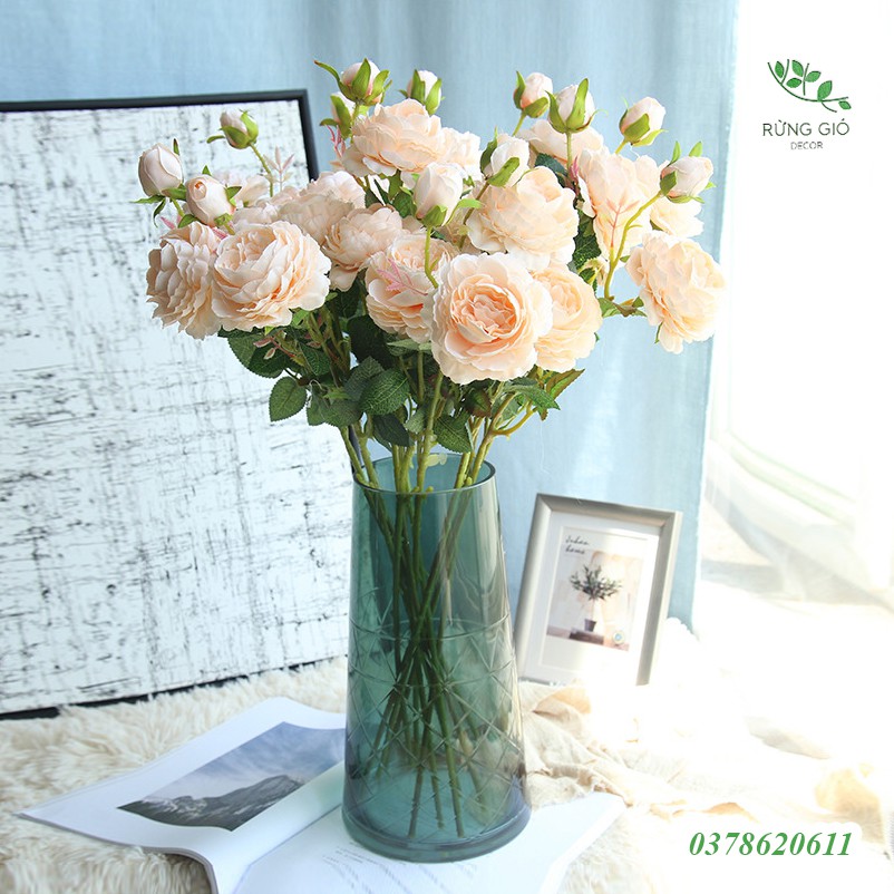 Giới thiệu Hoa mẫu đơn cành lớn 3 bông, hoa giả nhân tạo, giá bán của 1 cành