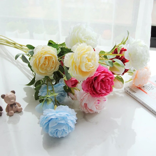 🎉Xin chào bạn đến với Siêu thị học đường🍀🍀Cành hoa mẫu đơn 3 bông xinh xắn decor chụp ảnh