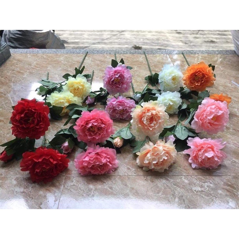 Hoa giả / Cành Hoa Mẫu Đơn Peony Hàn Quốc 2 bông 1 nụ bông lớn cánh hoa mềm mại giống thật hàng cao cấp