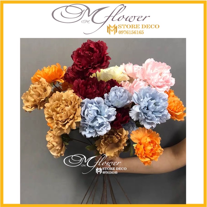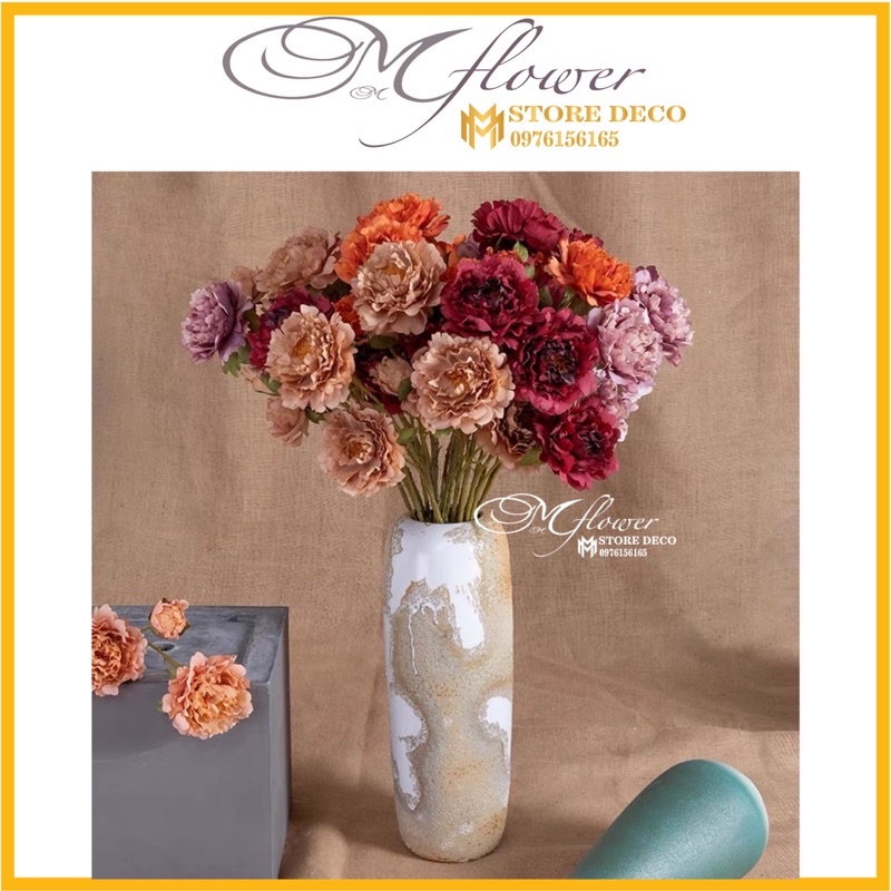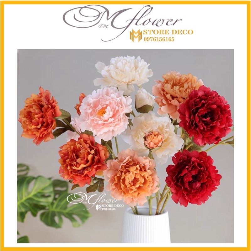 hoa Mẫu Đơn SIZE to dài 52cm,hàng nhập cao cấp gồm 2 bông 1 nụ - hoa giả giống thật - có ảnh thật, nhiều màu