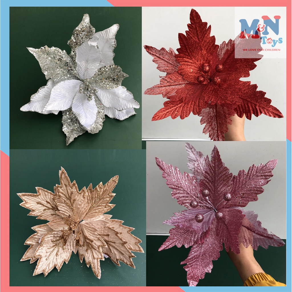 Nhà cửa & Đời sống > Trang trí nhà cửa > Hoa trang trí || Bông hoa nhũ cao cấp cỡ lớn trang trí cây thông Noel vòng nguyệt quế Giáng sinhCòn hàng