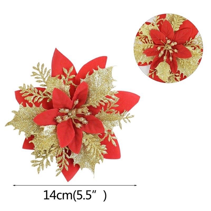 Bông hoa nhũ trang trí Noel, hoa trạng nguyên trang trí giáng sinh (Kích thước 14cm)Trang trí Noel, Giáng Sinh, Trang Trí Cây thông, Vòng Nguyệt quế
