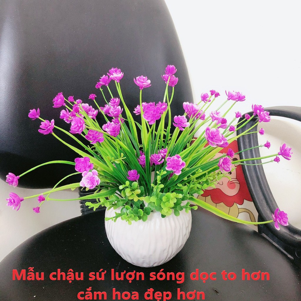 Hoa nhựa cao cấp, chậu hoa tóc tiên giả mini để bàn, kệ tủ siêu xinh