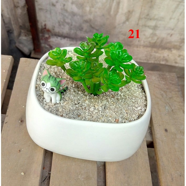 - Cây làm bằng nhựa dẻo, rất giống cây thật, thích hợp cho các bạn trồng trang trí bàn làm việc.
