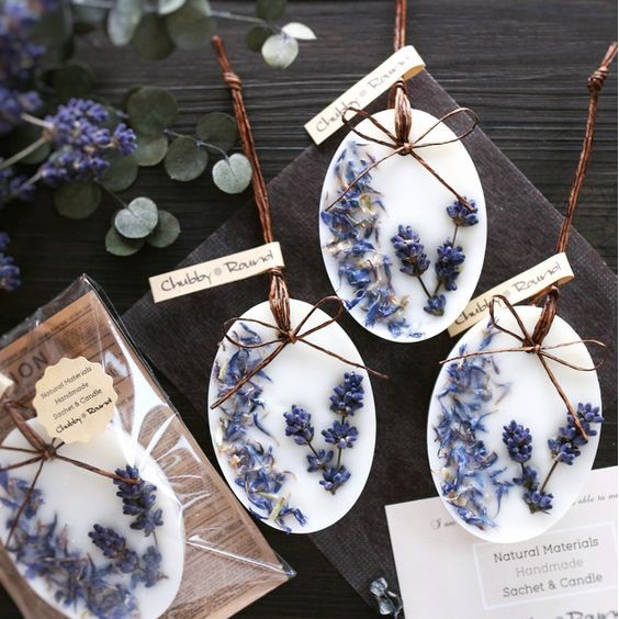 5. Sử dụng: những bông hoa khô được dát lên trên những lát sáp thơm, rất nhỏ và dễ thương ~~~