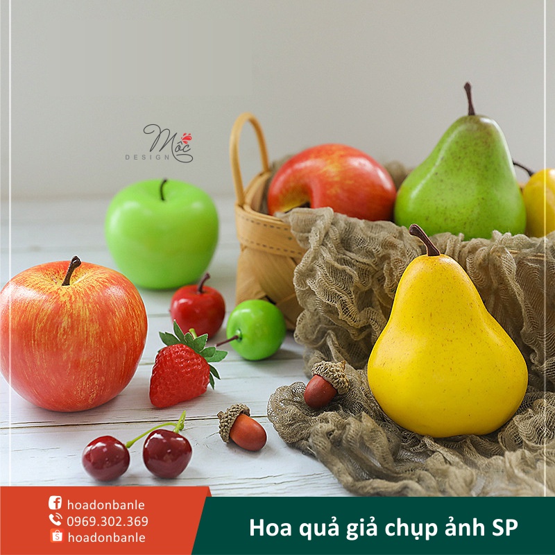 Hoa quả giả chụp ảnh sản phẩm - Phụ kiện chụp ảnh decor trang trí♥️Các mẫu: Táo đỏ - Táo xanh - Lê vàng - Lê xanh - Chùm cherry - Dâu tây - Hạt dẻ
