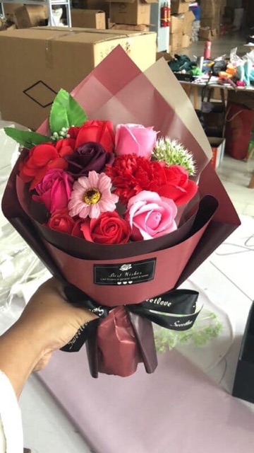 Hoa sáp bó nhiều mẫu kèm túi