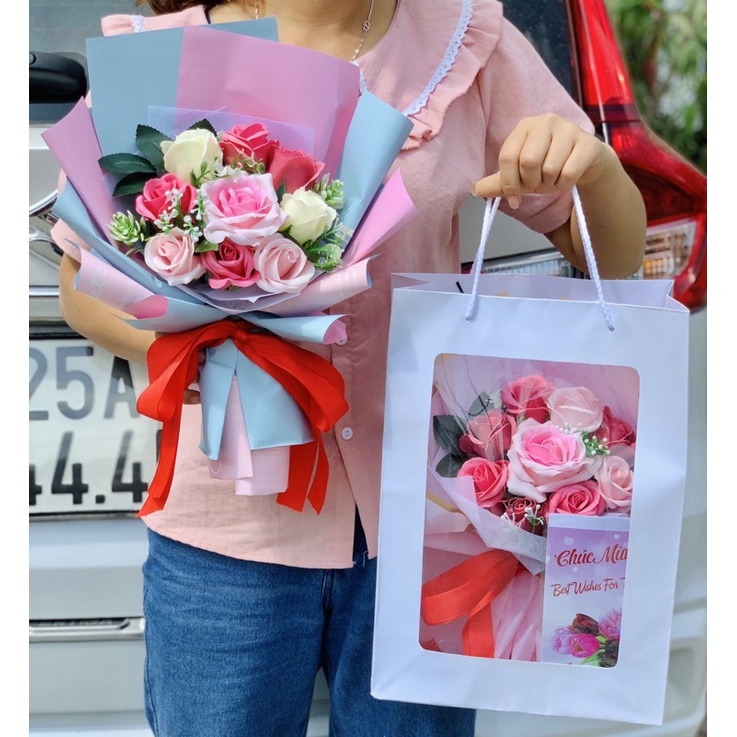 set hoa sáp kèm túi thiệp xinh xắn lịch sự lại rất vừa túi tiền ạcó 3 loại
