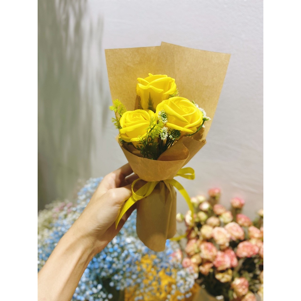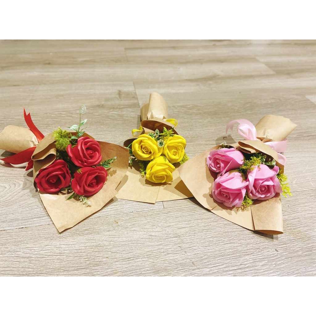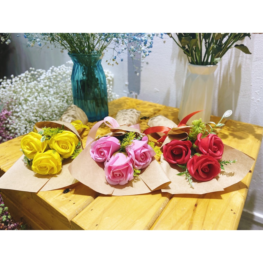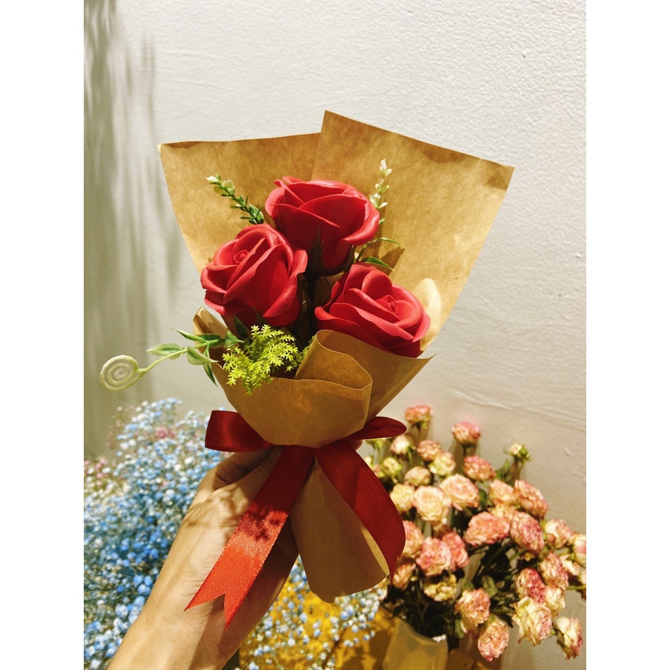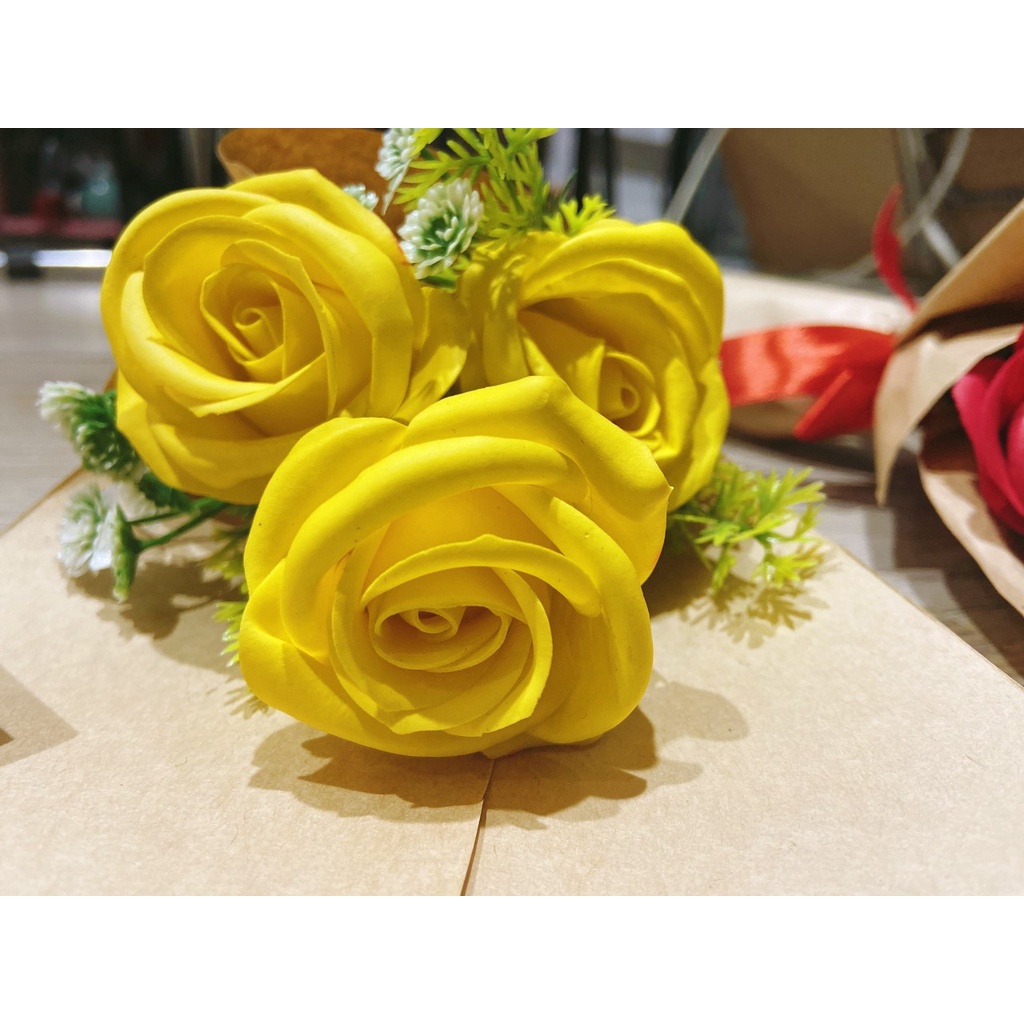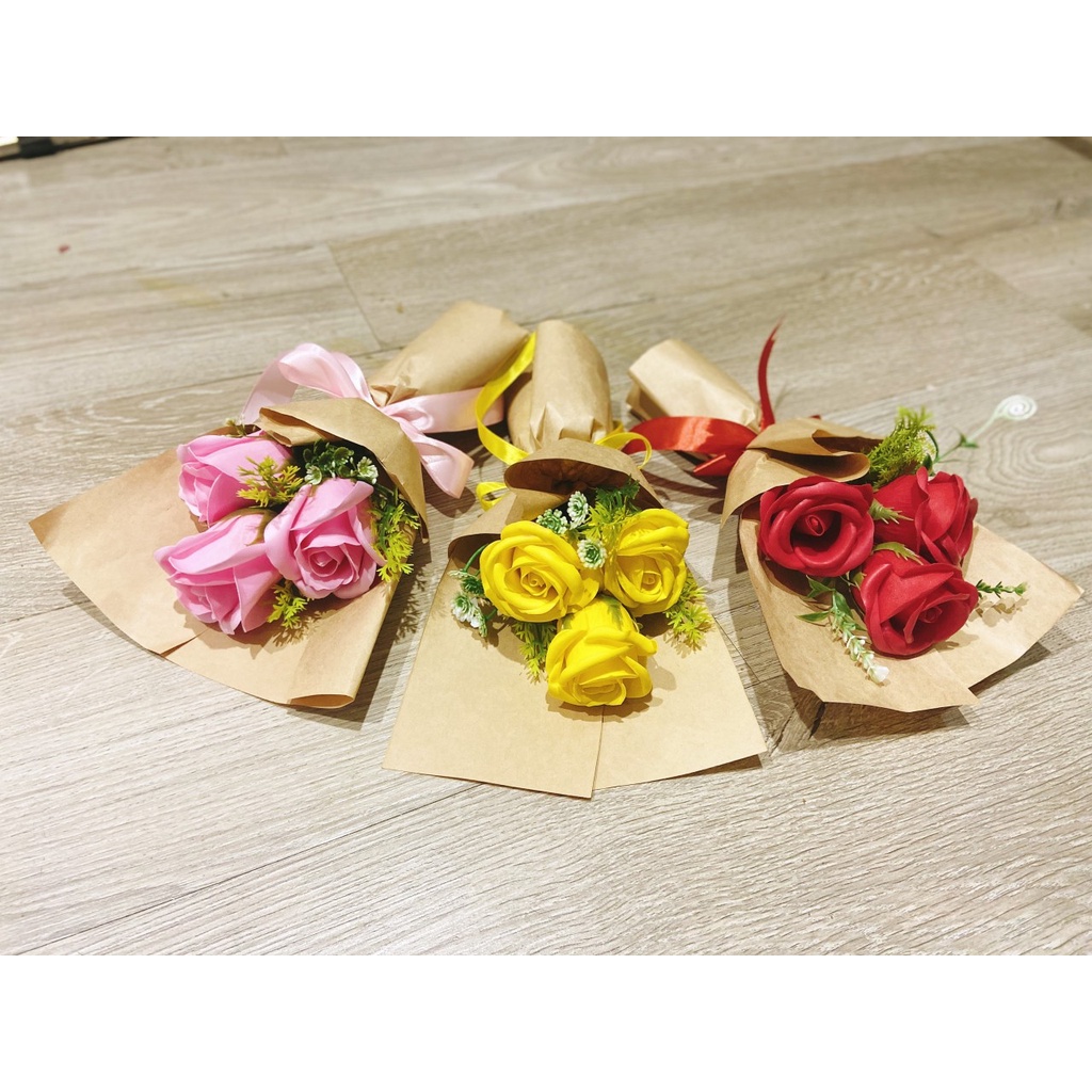 Hoa sáp thơm cao cấp bó 3 bông nhiều màu, hoa hồng sáp thơm - Hoa hồng sáp đẹp, làm quà tặng ý nghĩa lưu hương cực lâu
