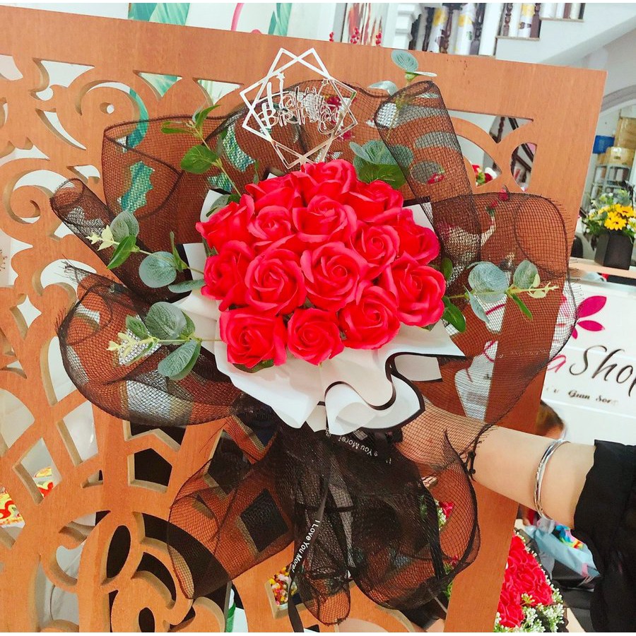 Hoa sáp thơm cao cấp bó to đẹp nhận làm theo yêu cầu- Hoa hồng sáp thơm quà tặng ý nghĩa lưu hương tới 2 năm có now shipChất liệu: Được làm từ xà phòng và sáp thơm tán mỏng dưới bàn tay khéo léo của các nghệ nhân để trở thành những bông hoa có sức sống như hoa thật tới 90%
