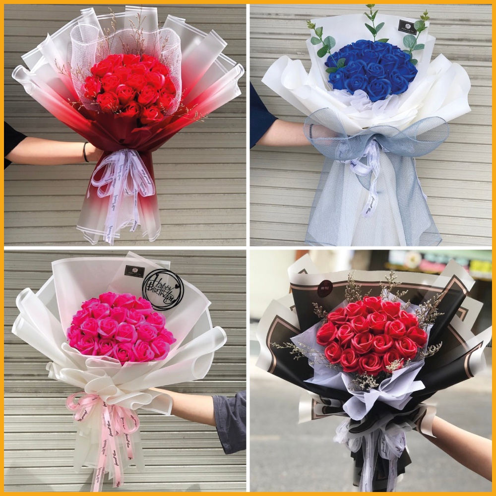 Chất liệu: Được làm từ xà phòng và sáp thơm tán mỏng dưới bàn tay khéo léo của các nghệ nhân để trở thành những bông hoa có sức sống như hoa thật tới 90%Mẫu mã: Đa dạng hoa cầm tay, lẵng hoa, hộp hoa, hoa trang trí với số lượng đa dạng và thiết kế độc đáo.