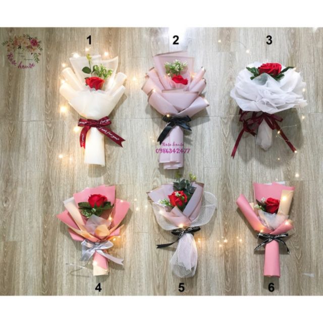 Hoa sáp1 bông gói như hình hoặc thay đổi giấy gói 1 chút nhưng đảm bảo nguyên tắc vẫn đẹp hài hòaKhách chọn màu ib shop nhé
