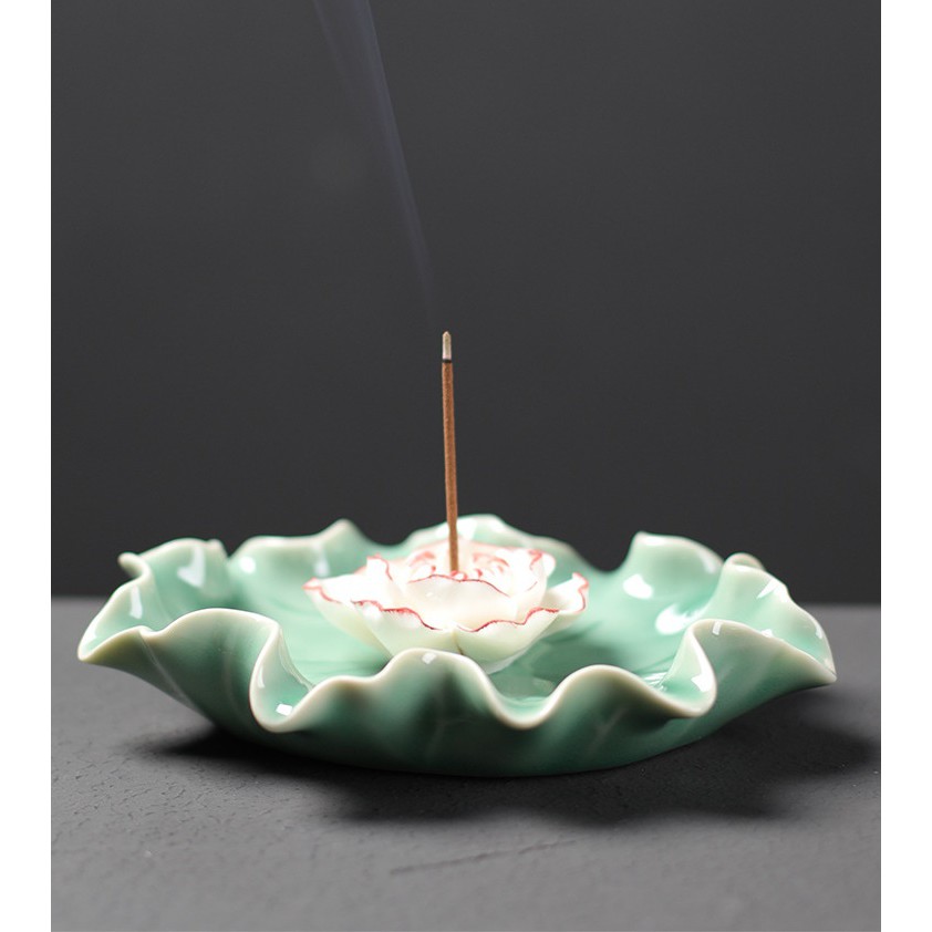 Hoa Sen Gốm Trắng Cánh Hồng Kèm Đế Sen Trang Trí Đốt Trầm