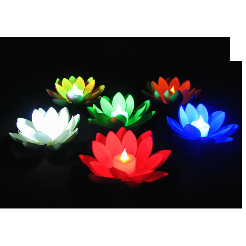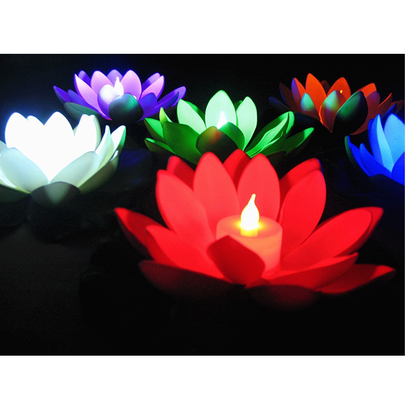 Hoa sen bằng xốp, nổi trên mặt nước. Đường kính 18cmNến điện tử đầy đủ các màu sắc, thời gian sáng liên tục 40h