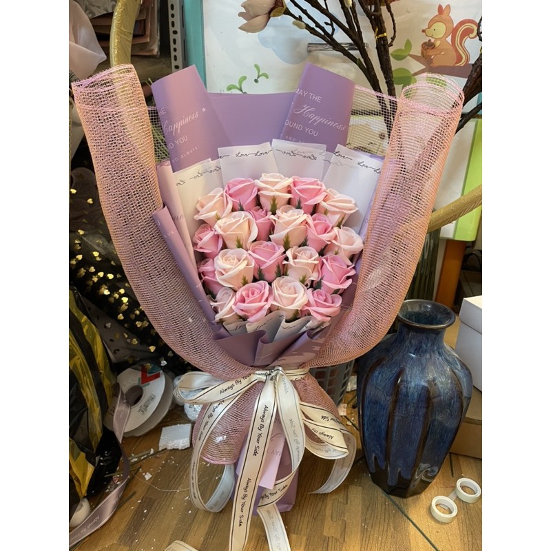 [Hoa sinh nhật - Có Nowship] Bó hoa sáp 4 lớp 20bông cao cấp phối lưới cứng. Thêm túi +30k
