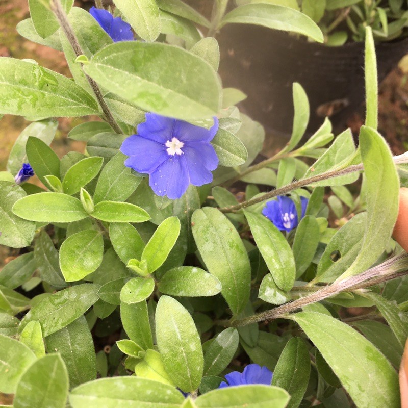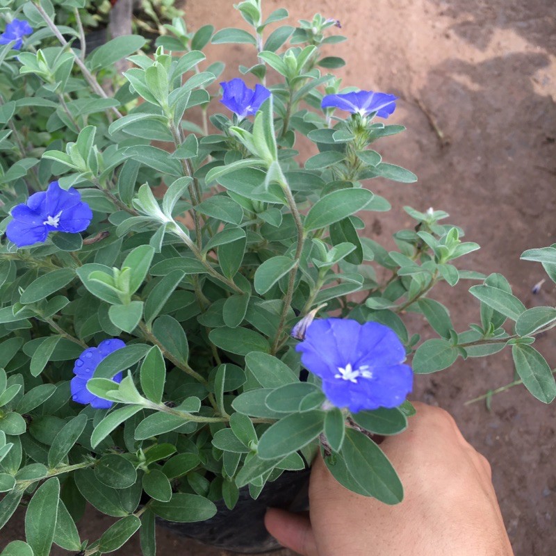Hình dáng hoa: hoa thanh tú nhỏ nhắn nhưng có sức quyến rũ hết sức kỳ lạ, nhìn vào màu xanh của hoa có cảm giác toàn thân mát lạnh, thoải mái, đưa ta đến gần với thiên nhiên. Hoa mọc đơn ở đầu cành hoặc sát nách lá với khoảng 5-6 cánh hoa mềm mịn, khi nở bung ra để lộ nhụy hoa màu trắng hình ngôi sao.