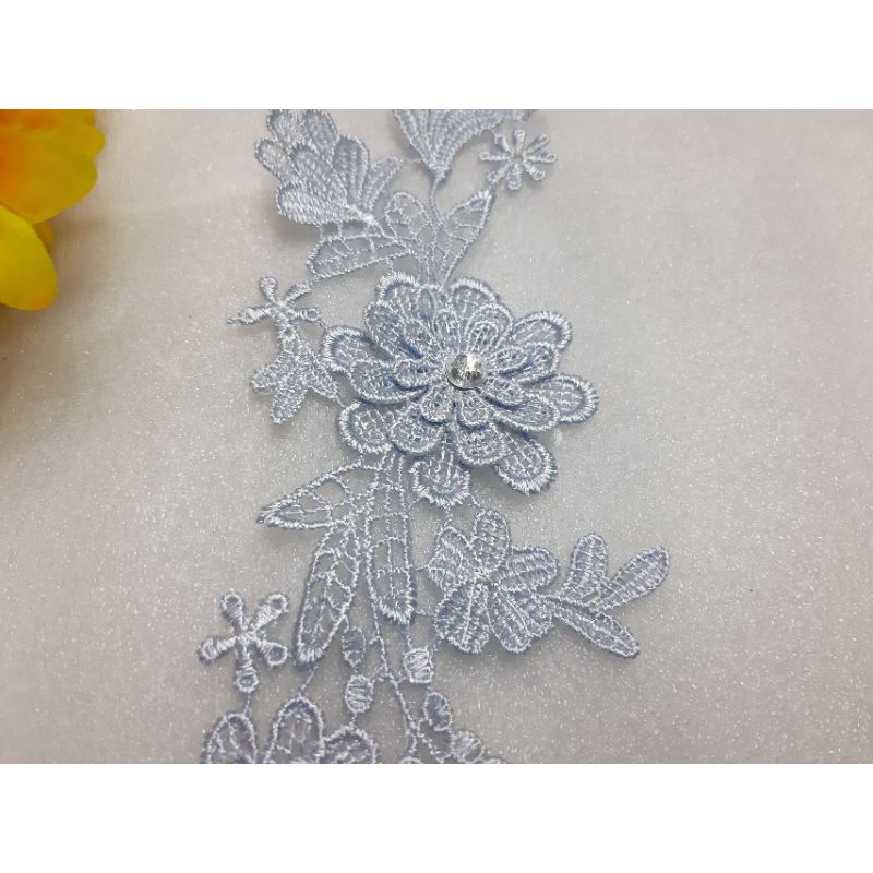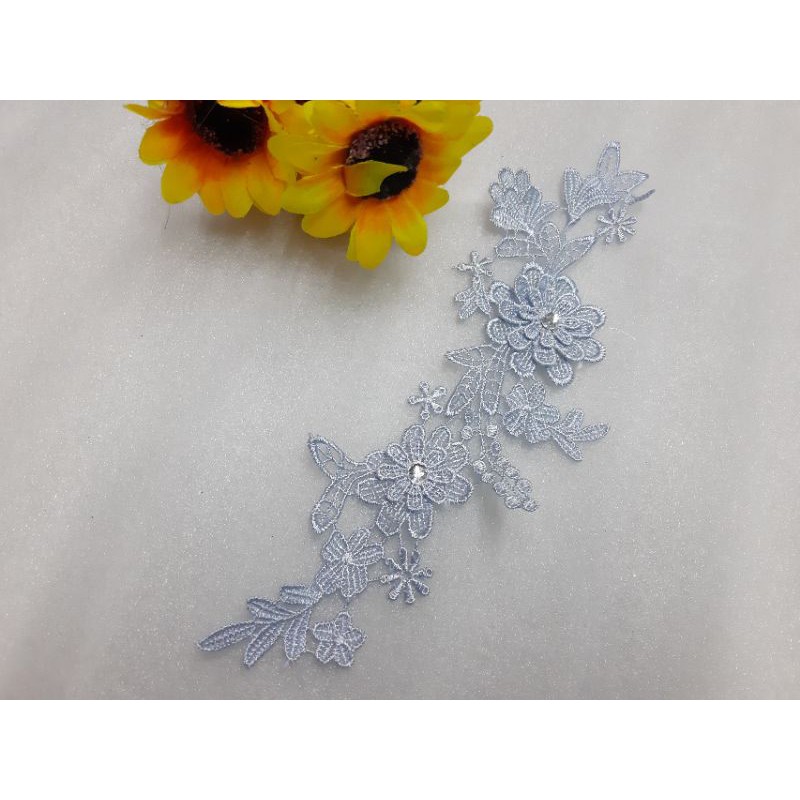 hoa thêu 3D màu xanh nhạt đính hạt