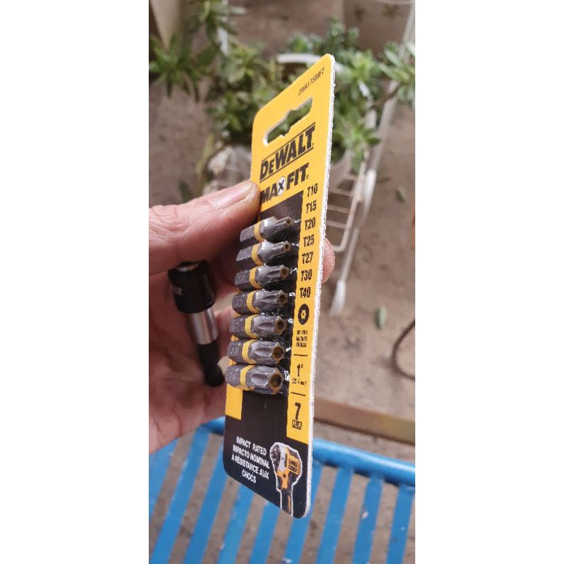 - Bao Gồm 7 Mũi Hoa Thị : T10,T15,T20,T25,T27,T30,T40 và 1 đầu nối Dewalt