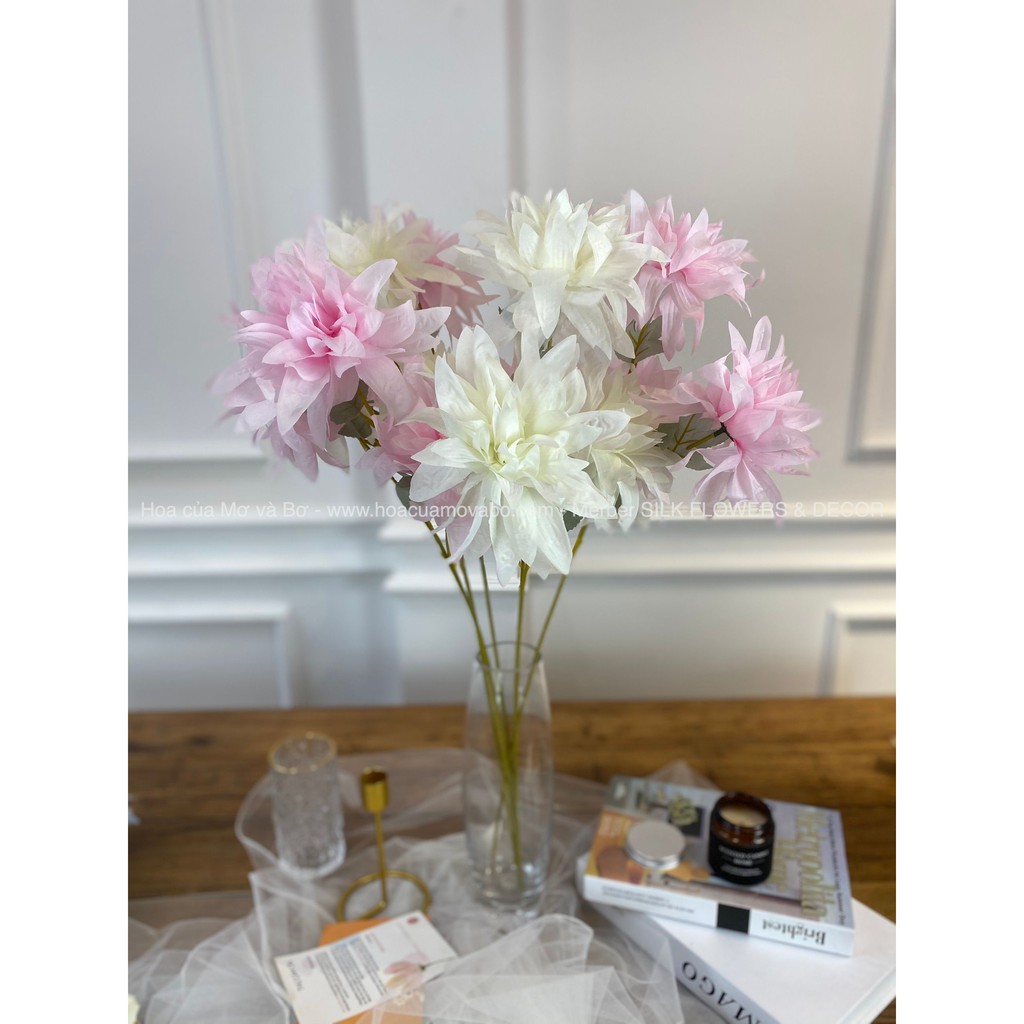 Hoa Thược Dược Lụa 3 Bông Đại 10/11cm Cao Cấp Merber Nhiều Màu - Bông Khô Hoa Giả Decor Trang Trí