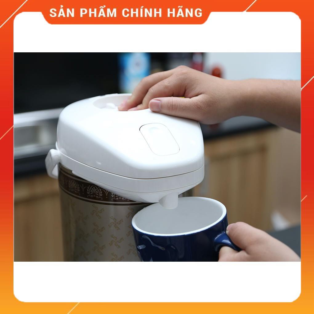 Bạn có thể rót nước sôi ra khỏi bình chỉ bằng một nút bơm tay được thiết kế ở phía trên nắp bình vô cùng thuận tiện. Thiết kế này còn góp phần hạn chế tối đa nguy hiểm từ nước sôi, đồng thời đảm bảo vệ sinh cho nước ở trong bình.
