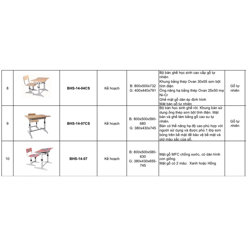 + BHS-14 là một sản phẩm bàn ghế học sinh chất lượng cao của nội thất Xuân Hòa.