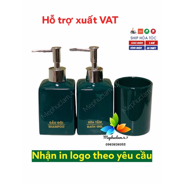 [Hoả tốc] Bình đựng dầu gội, sữa tắm bằng gốm sứ Bát Tràng