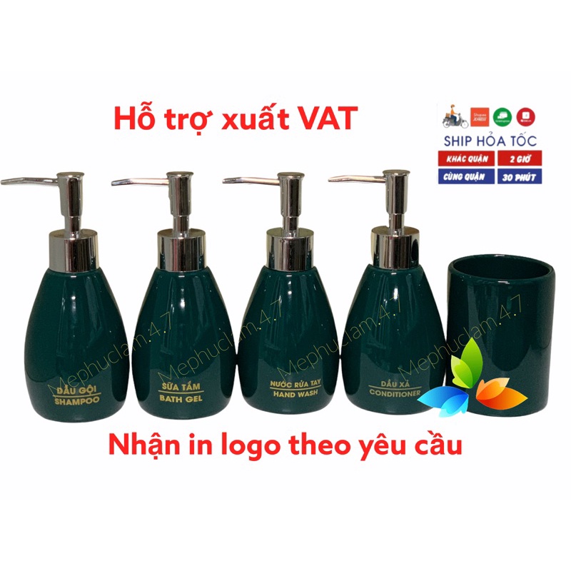 [ Hoả tốc] Bình sứ đựng dầu gội, sữa tắm, dầu xả, nước rửa tay cho khách sạn, homestay, vila, resort,..
