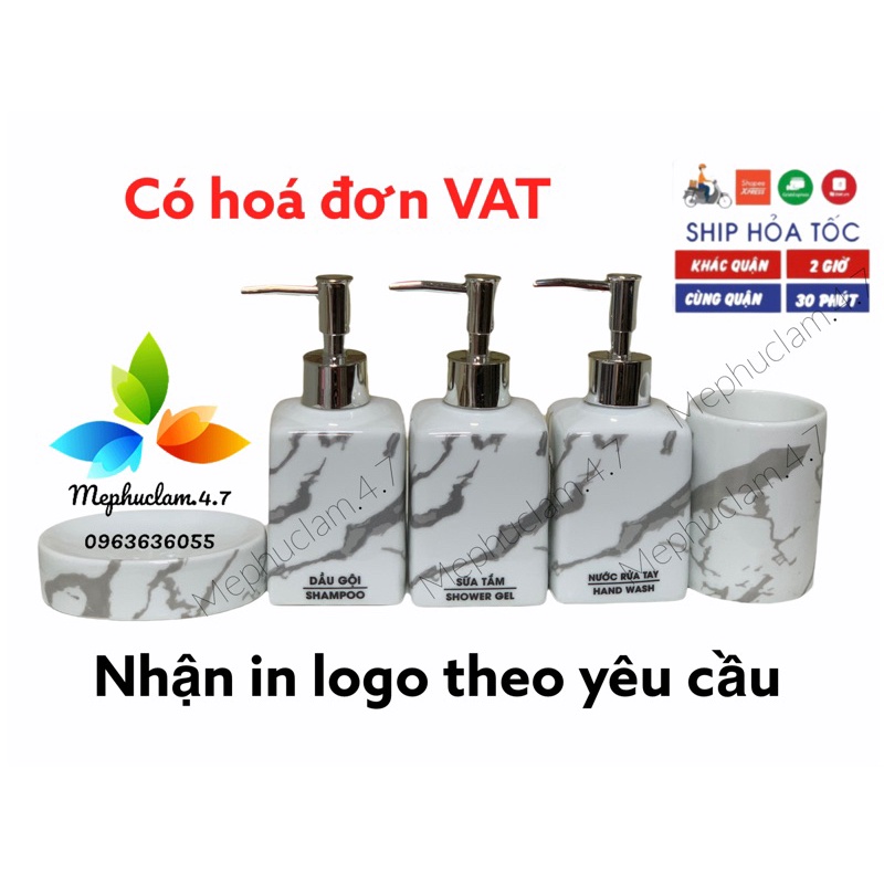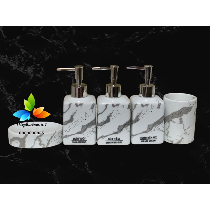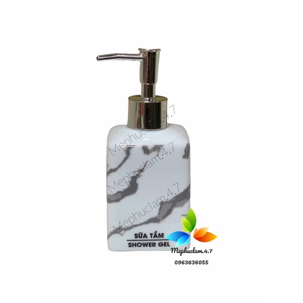Nhà cửa & Đời sống > Đồ dùng phòng tắm > Kệ đựng xà phòng || [Hoả tốc] Bình sứ đựng dầu gội, sữa tắm, dầu xả, nước rửa tay,..gốm sứ Bát Tràng màu trắng vân đá cao cấpCòn hàng