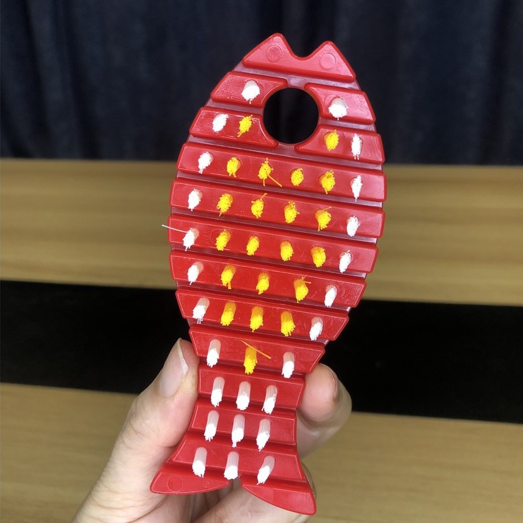 - Thiết kế bàn chải dạng con cá, rất tiện và vừa với tay cầm.