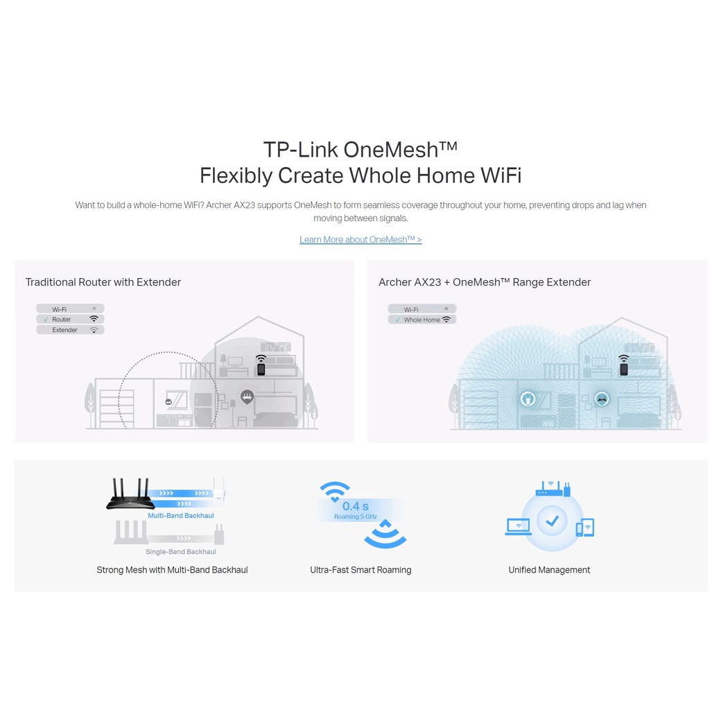 - OneMesh – Sử dụng với bộ mở rộng sóng OneMesh để phủ sóng toàn bộ ngôi nhà và tận hưởng chuyển vùng mượt mà giữa các tín hiệu.