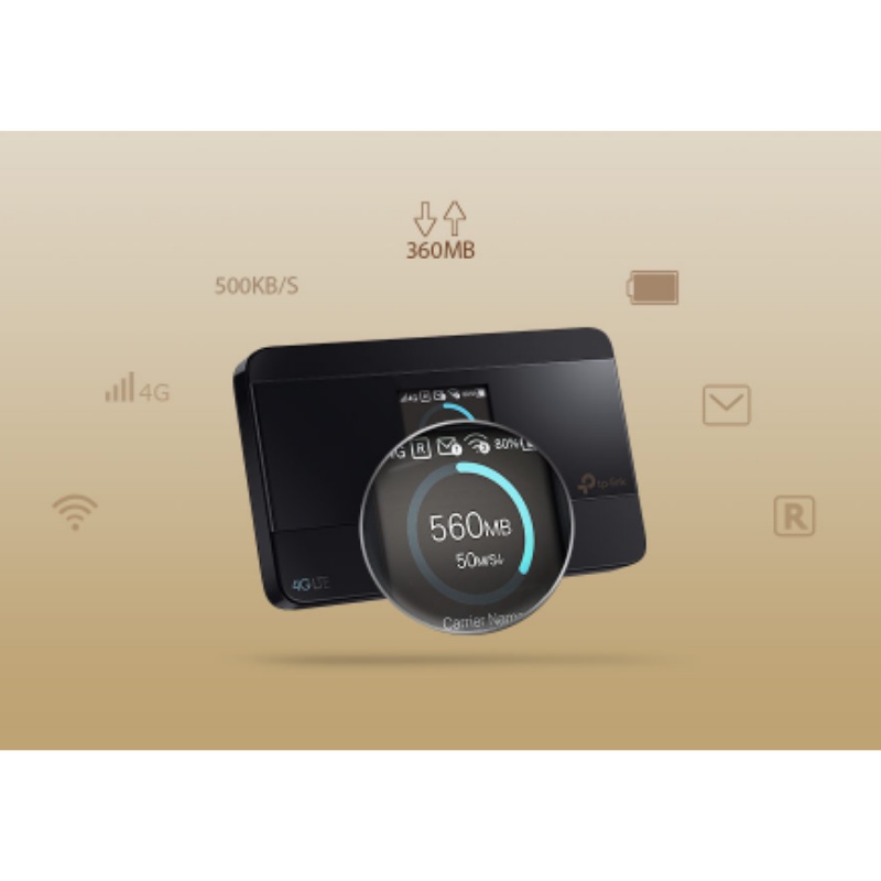 ✔ Màn hình hiển thị trực quan của M7350 giúp bạn dễ dàng kiểm soát dữ liệu và tránh vượt qua giới hạn dữ liệu hàng tháng. Màn hình cũng hiển thị nhiều thông tin khác về tuổi thọ pin, cường độ tín hiệu, trạng thái Wi-fi, người dùng được kết nối, ...