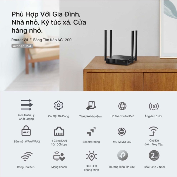 Máy tính & Laptop > Thiết Bị Mạng > Bộ Phát Wifi || [Hỏa Tốc - HCM] Bộ Phát Wifi TP-Link Băng Tần Kép AC1200 Archer C54 | Hàng Chính Hãng | Bảo Hành 24 Tháng | MimaxstoreCòn hàng