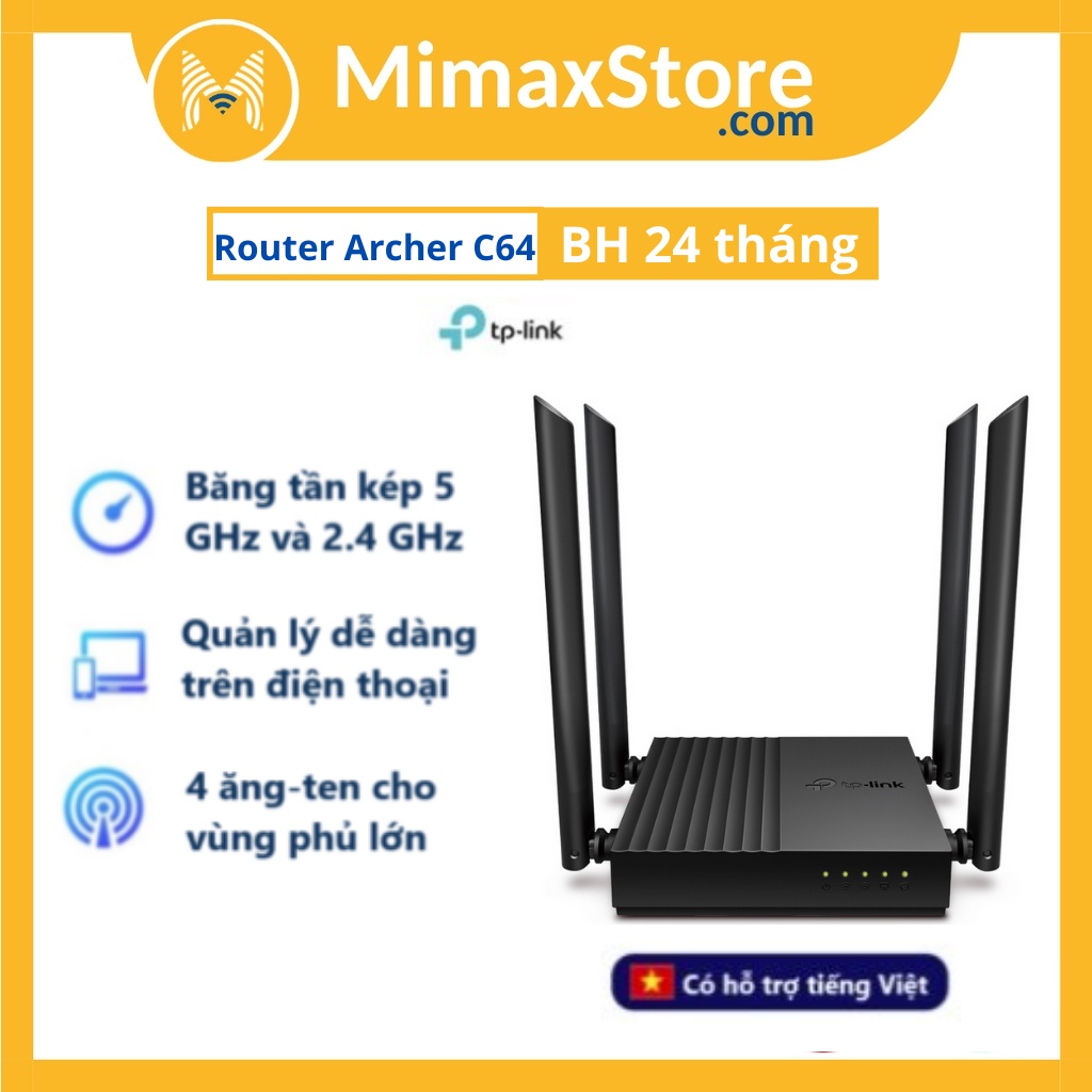 [Hỏa Tốc - HCM] Bộ Phát Wifi TP-Link Archer C64 Băng Tần Kép AC1200 Gigabit | Bảo Hành 24T | Mimax Store