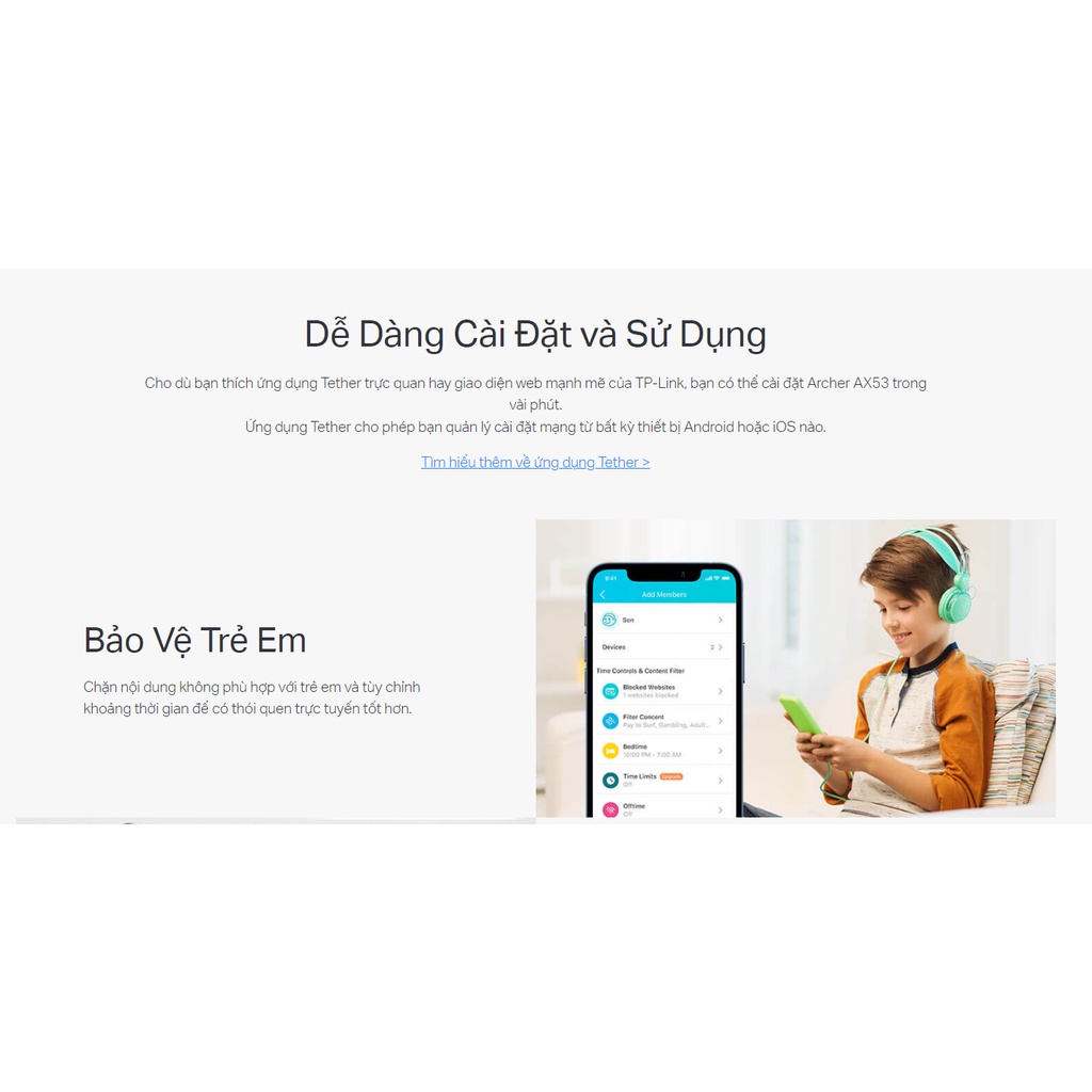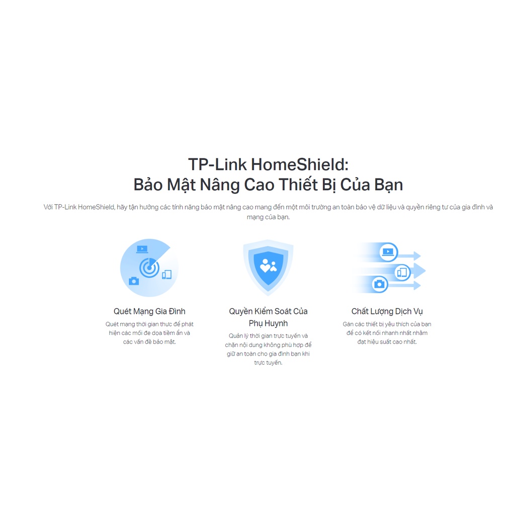 - TP-Link HomeShield - Bảo mật nâng cao bảo vệ chống lại các mối đe dọa mạng mới nhất.