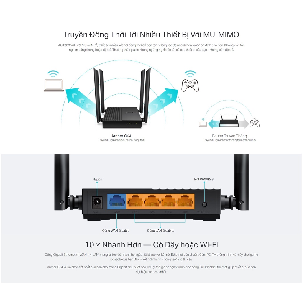 🏷️ BỘ PHÁT WIFI TP-LINK ARCHER C64 GIGABIT MU-MIMO CHUẨN AC 1200Mbps🎖️ Sản phẩm đoạt giải thưởng "Price-Quality" được trao bởi SMARTPONE.UA (Ukraine) 2021
