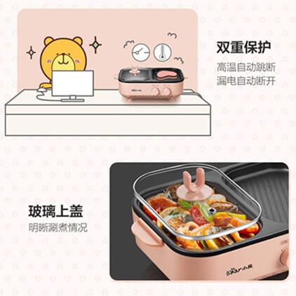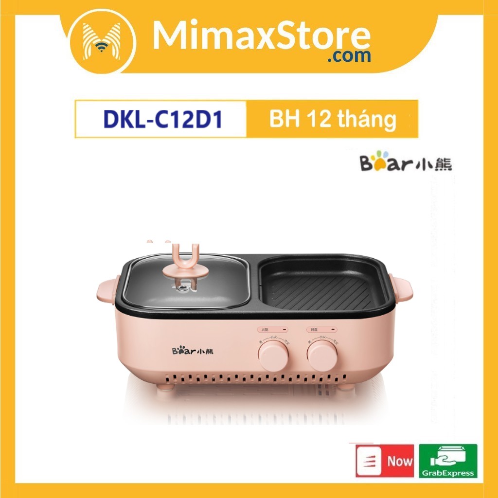 [Hỏa Tốc - HCM] Chảo Điện Nướng Và Lẩu Mini Đa Năng 2in1 Bear DKL-C12D1 | Hàng Chính Hãng | Bảo Hành 18 TH | Mimax Store