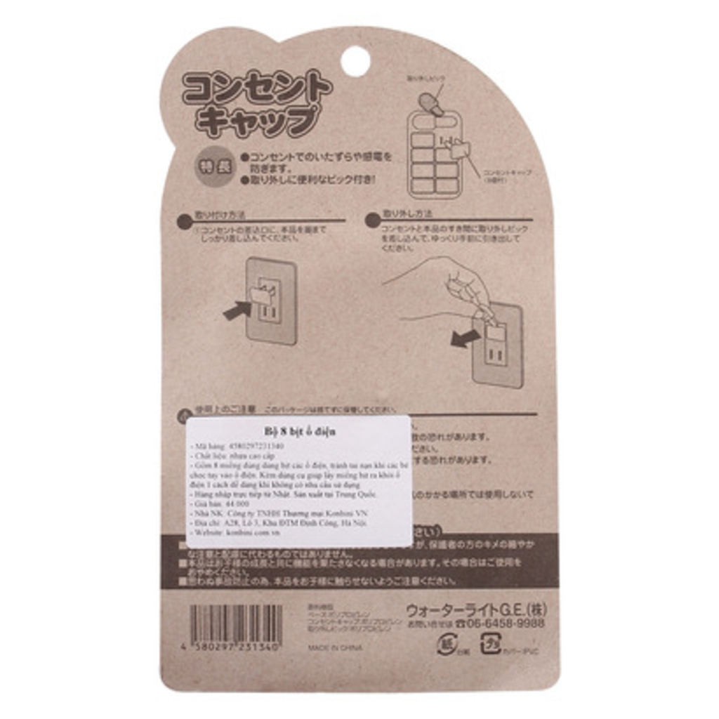 - Gồm 8 miếng dùng dùng bịt các ổ điện, tránh tai nạn khi các bé chọc tay vào ổ điện. Kèm dùng cụ giúp lấy miếng bịt ra khỏi ổ điện 1 cách dễ dàng khi không có nhu cầu sử dụng