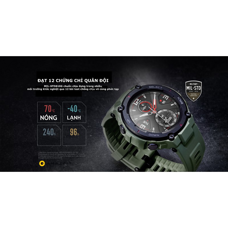 Hình dáng của Amazfit T-Rex Pro cứng cáp và chắc chắn với các góc cạnh khác biệt. Sau khi vượt qua 15 bài kiểm tra cấp quân sự 1, đồng hồ có thể chiến đấu cùng bạn qua các sa mạc nóng, rừng nhiệt đới ẩm ướt và sông băng ở vùng cực. Chứng kiến sức chịu đựng vượt qua các yếu tố một cách dễ dàng.