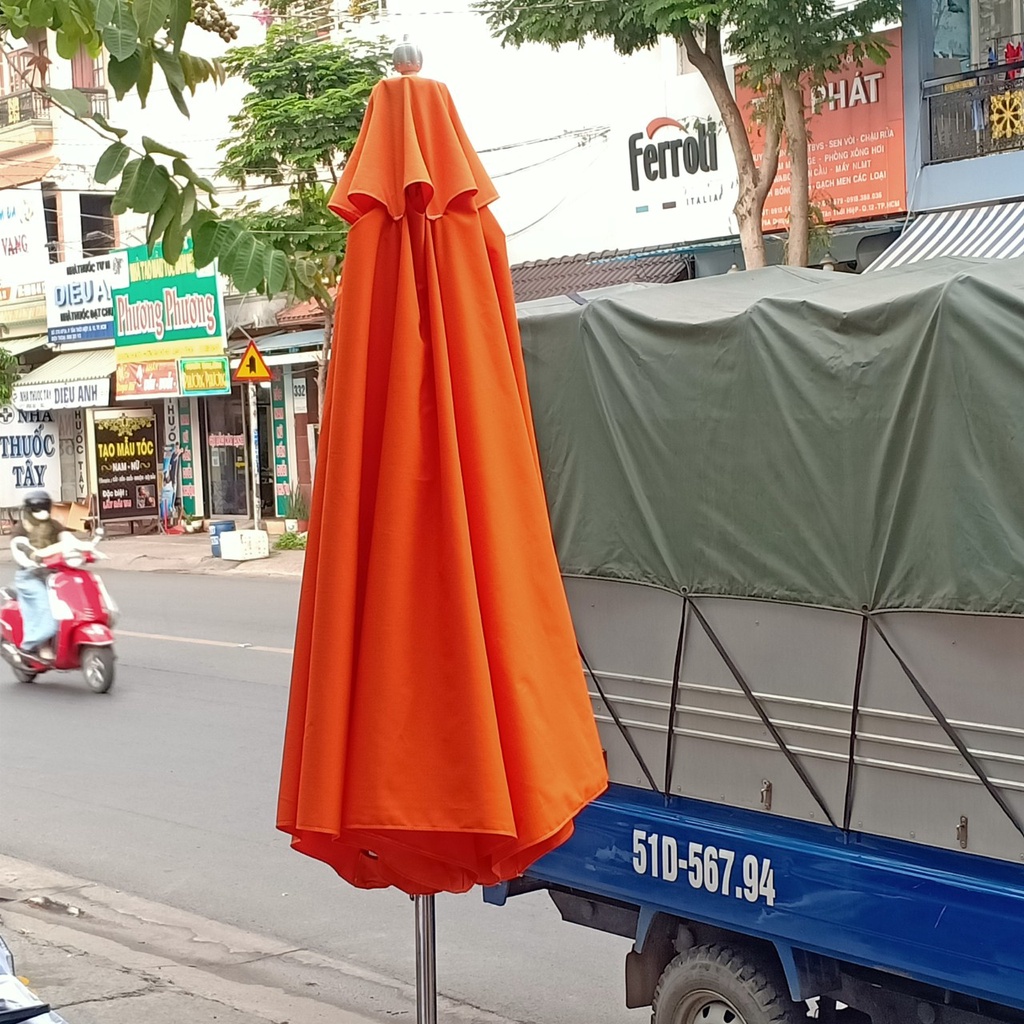 - Với tán dù có diện tích che nắng lớn nên dù đúng tâm tròn 3 mét sẻ là lựa chọn tuyệt vời cho những quán có không gian lớn