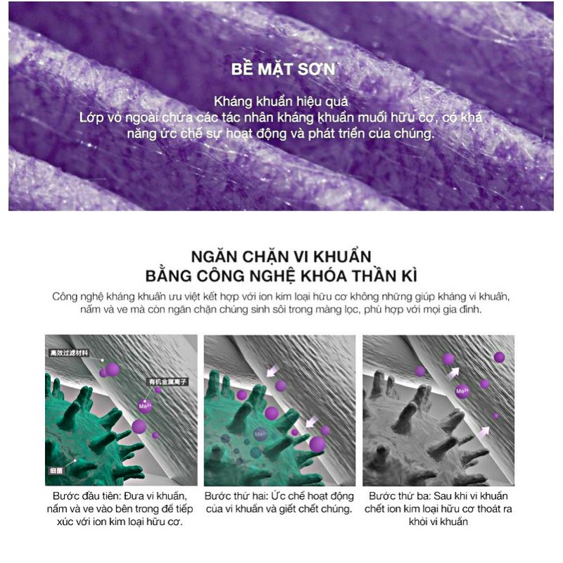 ✔ Loại bỏ hiệu quả vi khuẩn và các loại bụi bẩn nhờ lớp kháng khuẩn được thiết kế đặc biệt và lõi lọc Formaldehyde có bốn lớp lọc do đó hiệu suất hoạt động cũng gấp 4 lần lõi lọc bình thường.