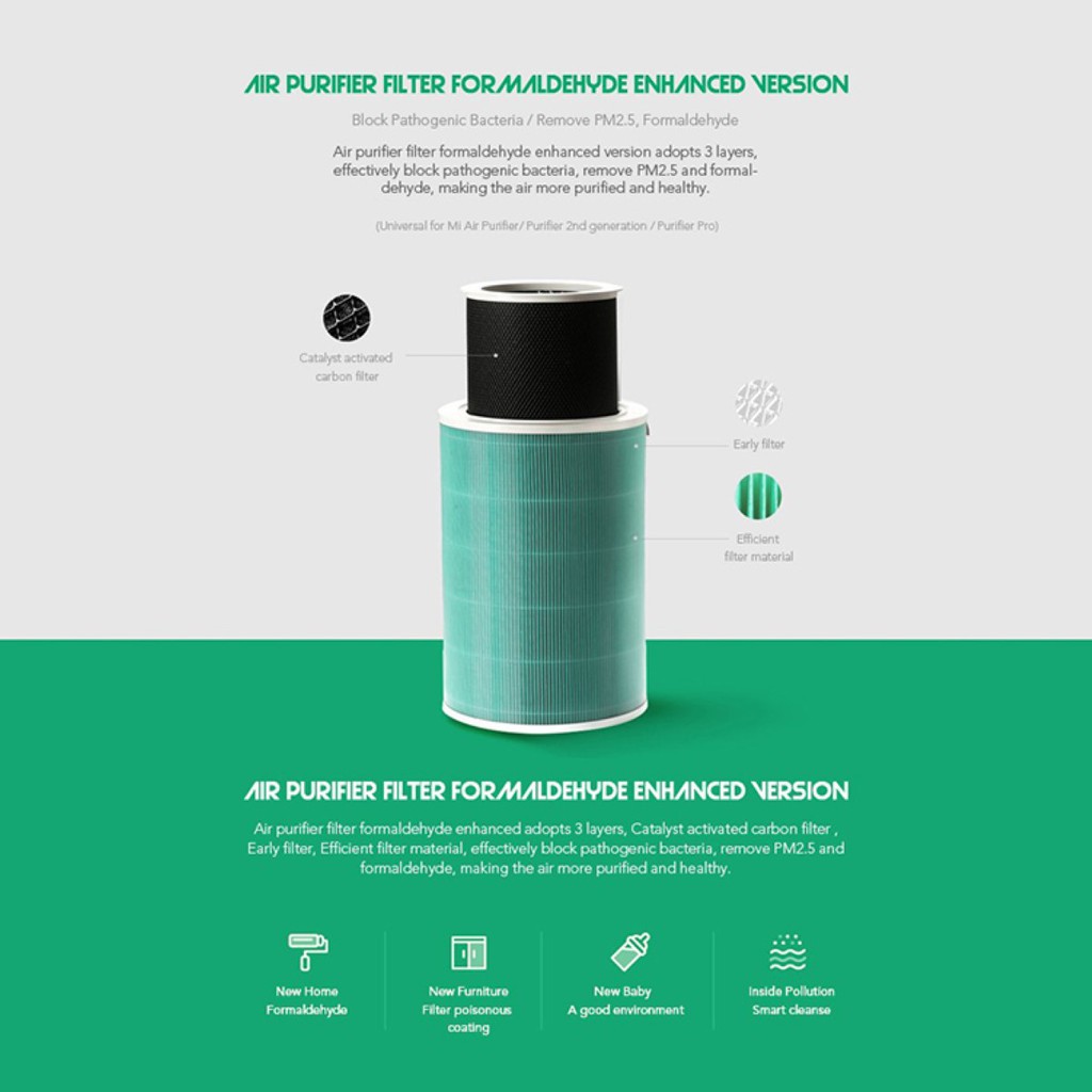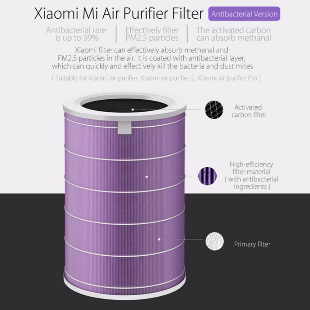 - Lõi lọc không khí kháng khuẩn Xiaomi Loại bỏ hiệu quả vi khuẩn và các loại bụi bẩn. Lớp kháng khuẩn được thiết kế đặc biệt. Lõi lọc Formaldehyde có bốn lớp lọc. Thiết kế hình trụ dài kiểu nếp gấp giúp tăng diện tích tiếp xúc. Dùng được cho Máy lọc không khí Xiaomi, Xiaomi 2 và Xiaomi Pro. Khả năng lọc 99,9% các loại bụi .