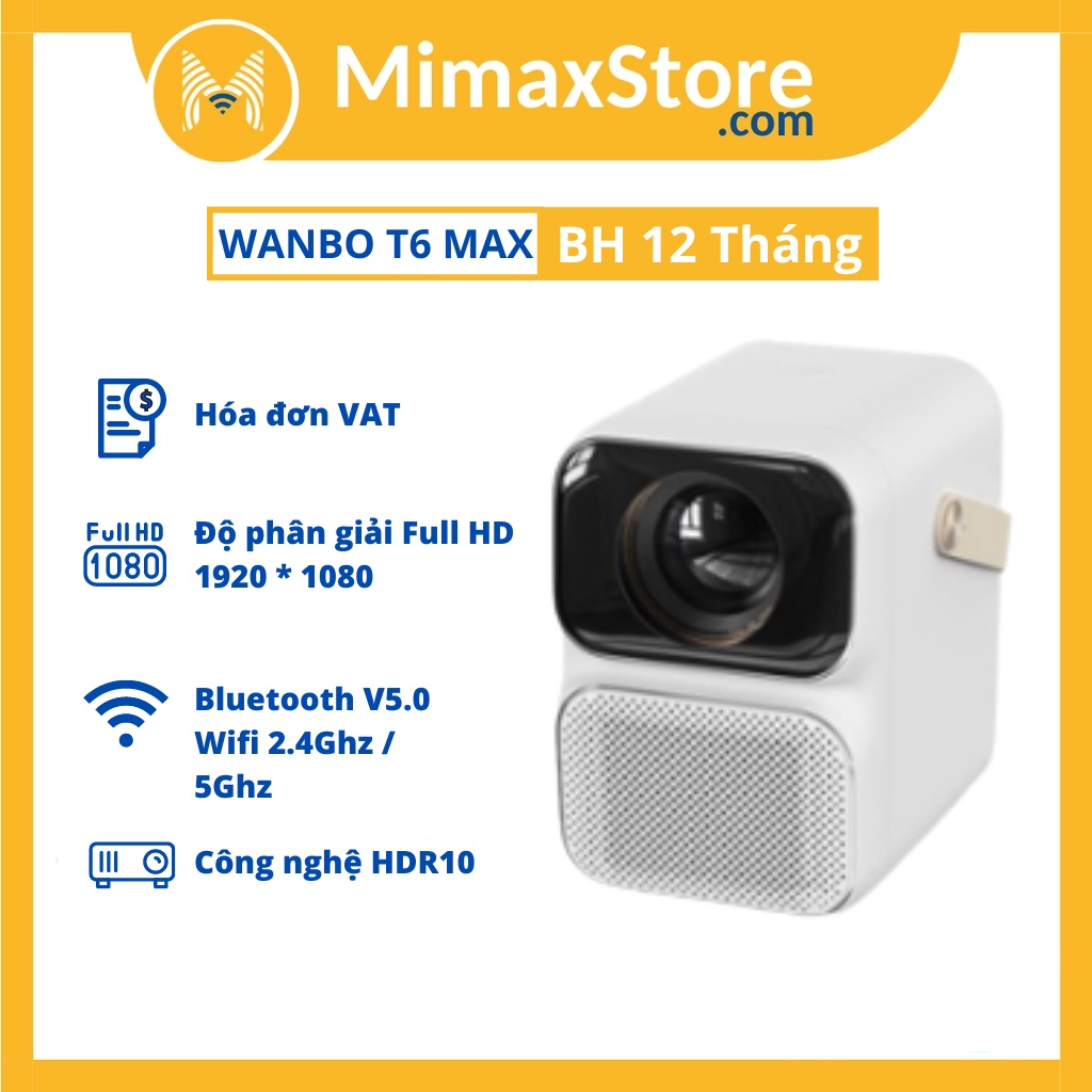 [Hỏa Tốc - HCM] Máy Chiếu Xiaomi WANBO T6 MAX FULL HD 1080P WIFI 5G Tự Động Lấy Nét | Bản Quốc Tế | BH 12T | Mimax Store
