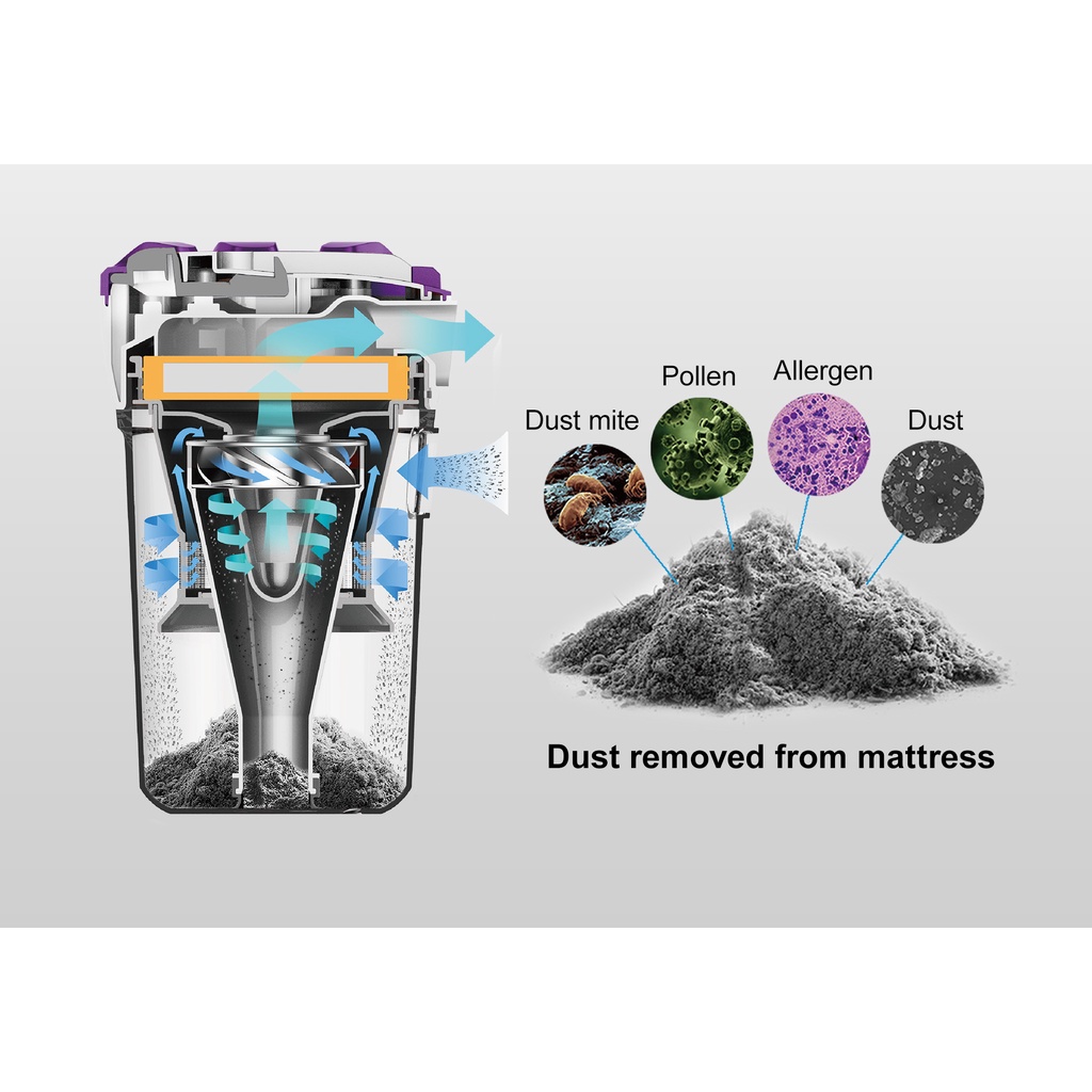 - Diệt khuẩn bằng tia UV-C diệt 99,99% vi khuẩn: Tia LED UV-C có bước sóng dài, diệt mạt hiệu quả. Khi nâng máy lên ở góc trên 30 độ hoặc chiều cao của máy cách giường hơn 5 cm bề mặt, đèn cực tím sẽ tự động tắt.