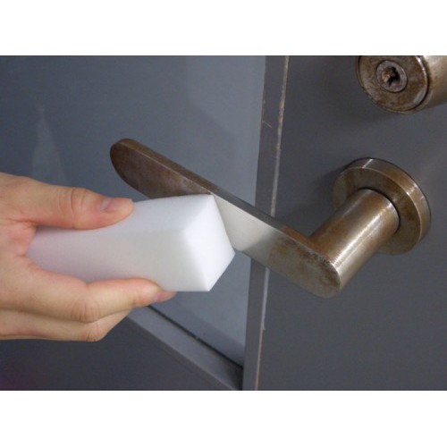 Mút được làm từ chất liệu mút Melamine foam, giúp lấy đi vết bẩn, ố cứng đầu trên vật dụng thủy tinh, inox, nhựa, gốm, gạch, men, gương kính… mà không cần dùng nước rửa chén, dung dịch tẩy rửa…