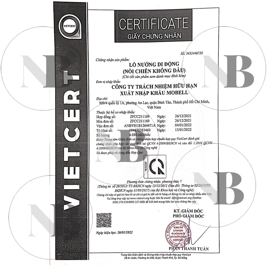 Sản phẩm của shop Nhà Best Nhà Bếp bán ra là sản phẩm chính hãng, do công ty mobell Việt Nam nhập khẩu và phân phối tại thị trưởng việt nam. Sản phẩm sản xuất theo tiêu chuẩn việt nam, phụ hợp quy chuẩn kỹ thuận Viêt Nam, qua cơ quan kiểm tra chất lượng VIETCERT kiểm định và cấp giấy chứng nhận hợp quy.