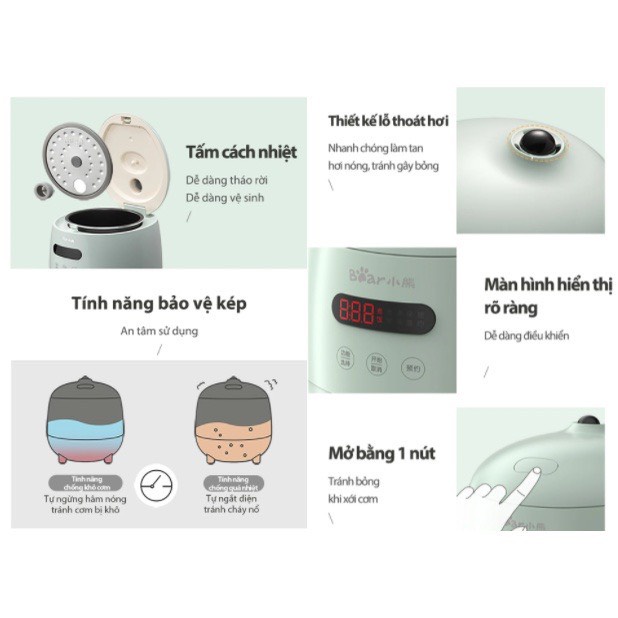 Thương hiệu: Bear | Xem thêm các sản phẩm Nồi cơm điện của BearMô tả ngắn